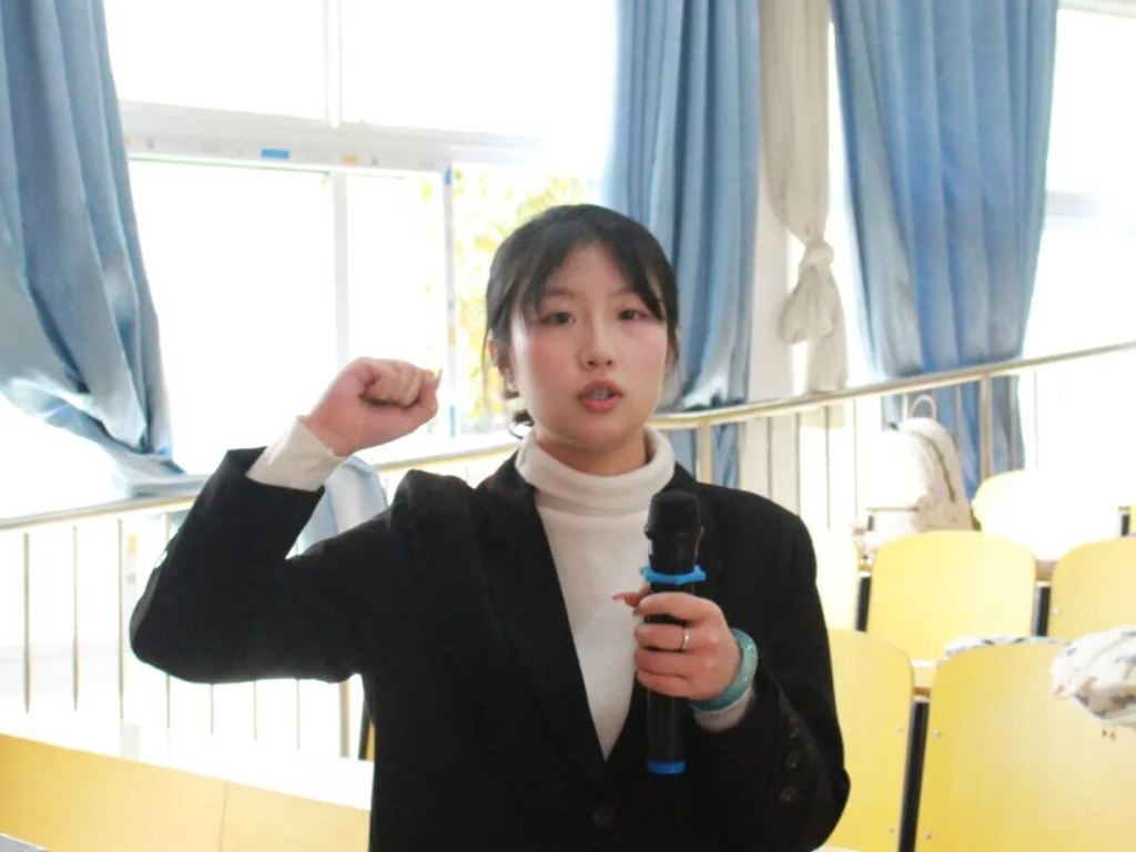 大会进行第四项,由0638太阳集团第十期团校优秀学员高婧涵和第十一期团校学生代表余永梅分别发言。她们呼吁同学们坚定理想信念,端正学习态度,培养主动钻研的精神,将知识运用于实践,勇担时代责任。